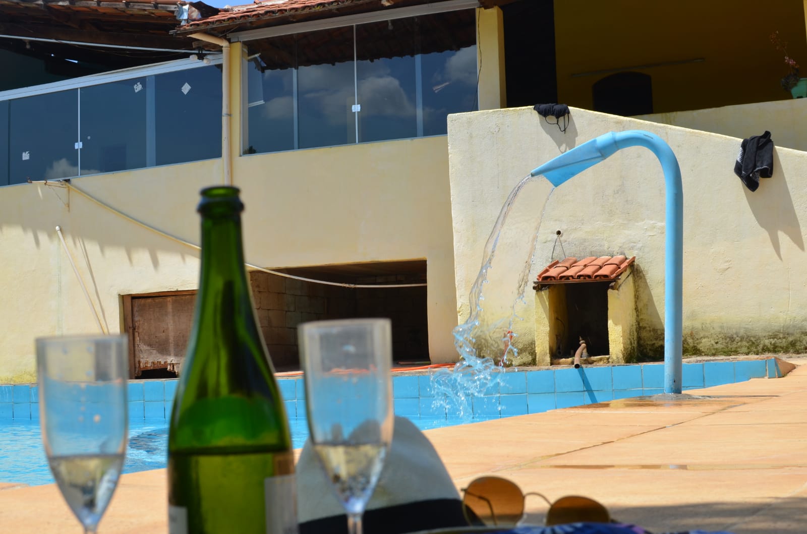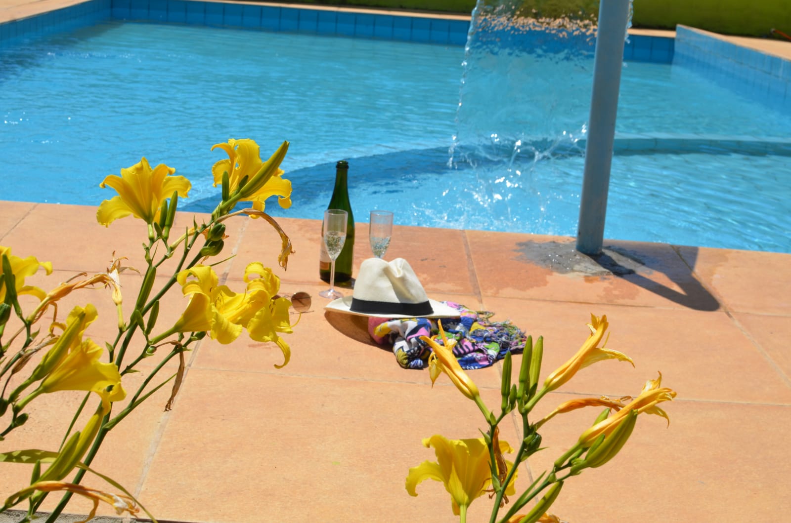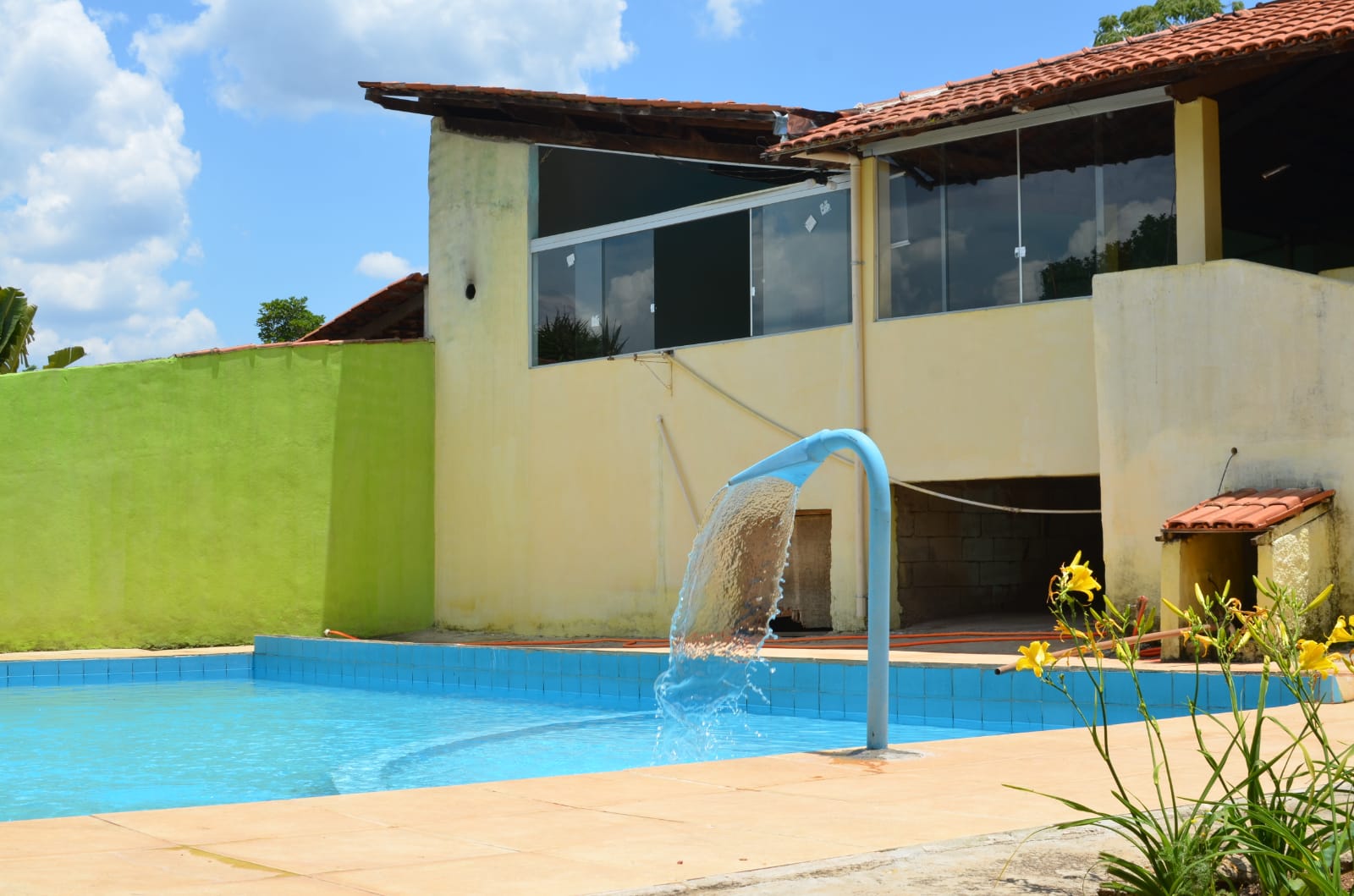 Piscina com cascata para um banho relaxante e prazeroso