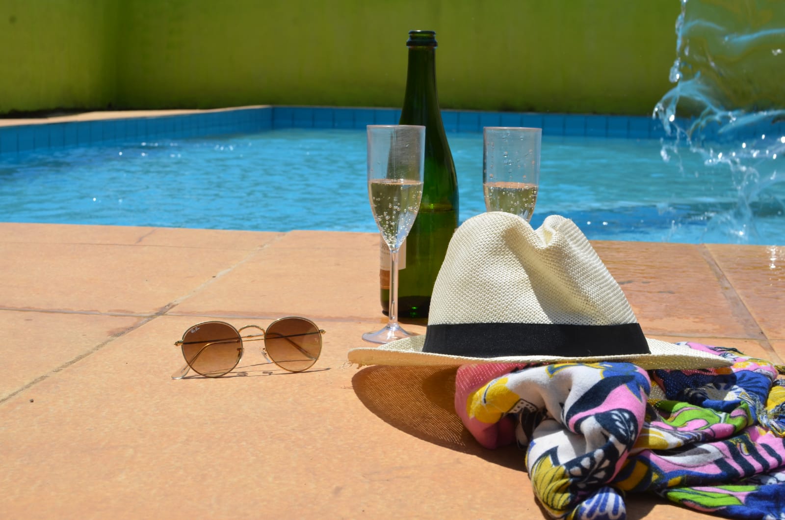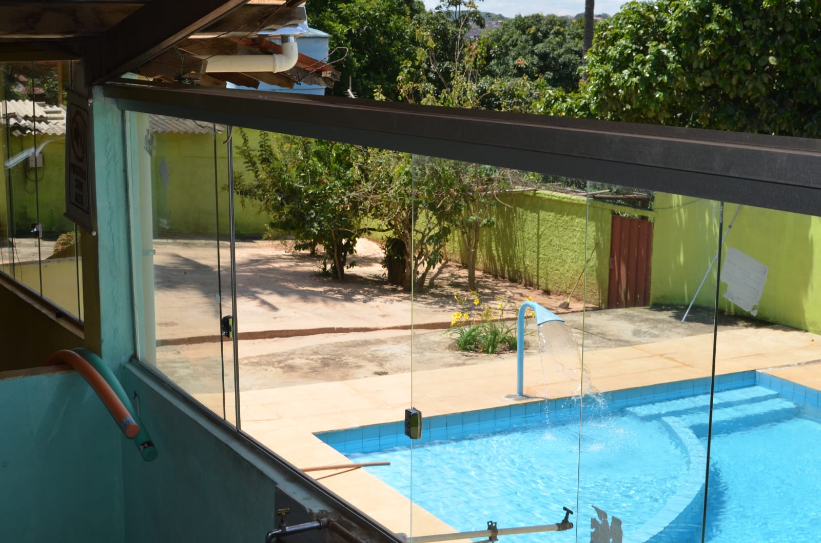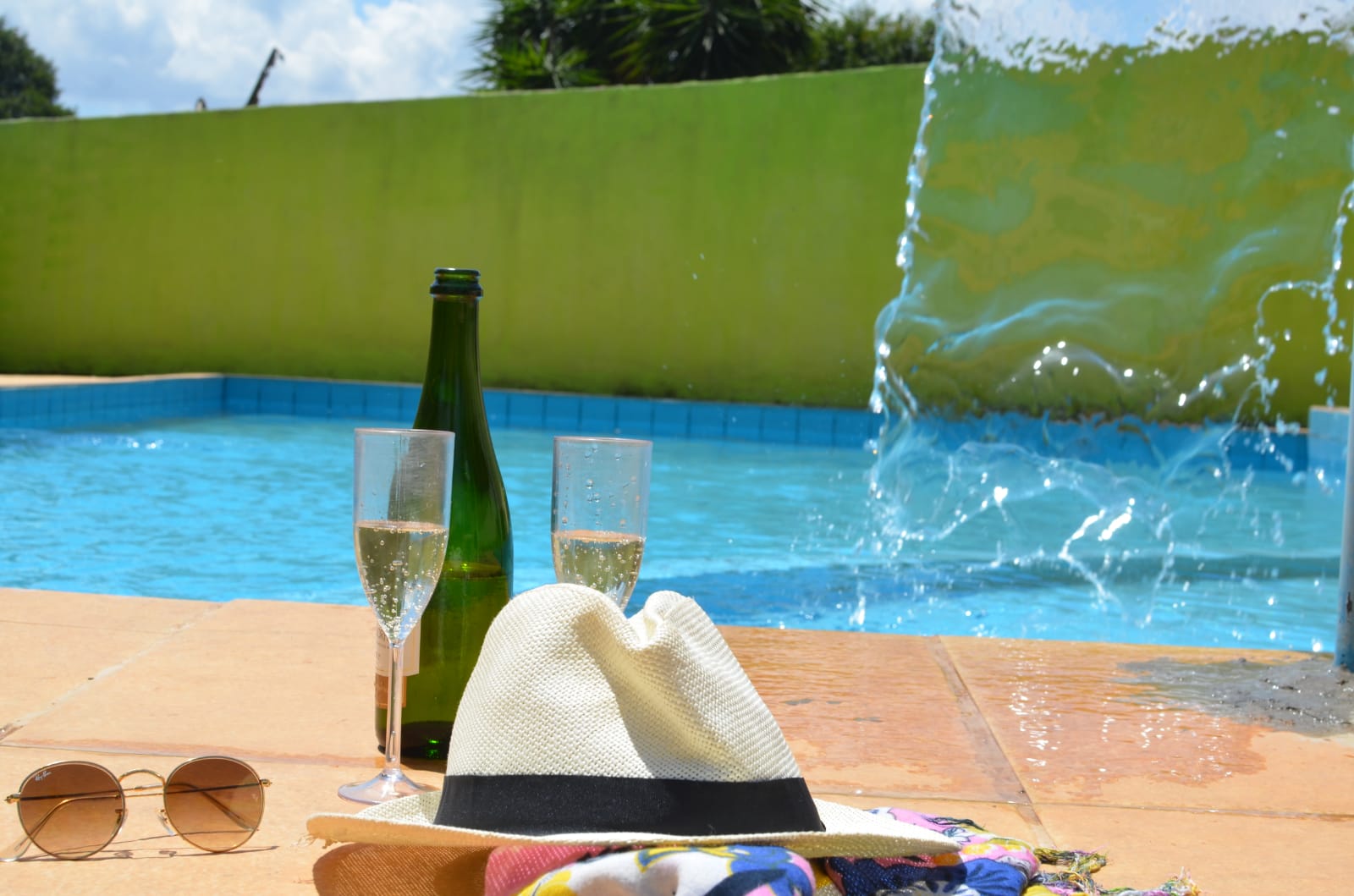Piscina com cascata para um banho relaxante e prazeroso