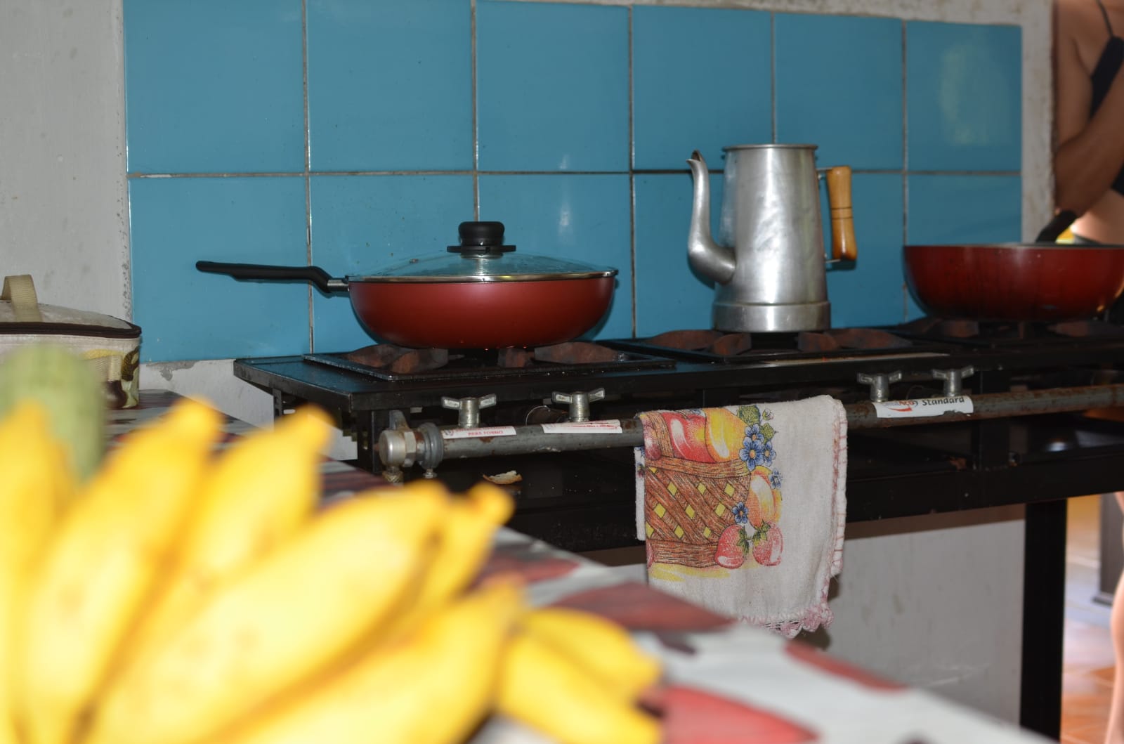 Cozinha mobiliada e ampla, completa para preparação de alimentação.